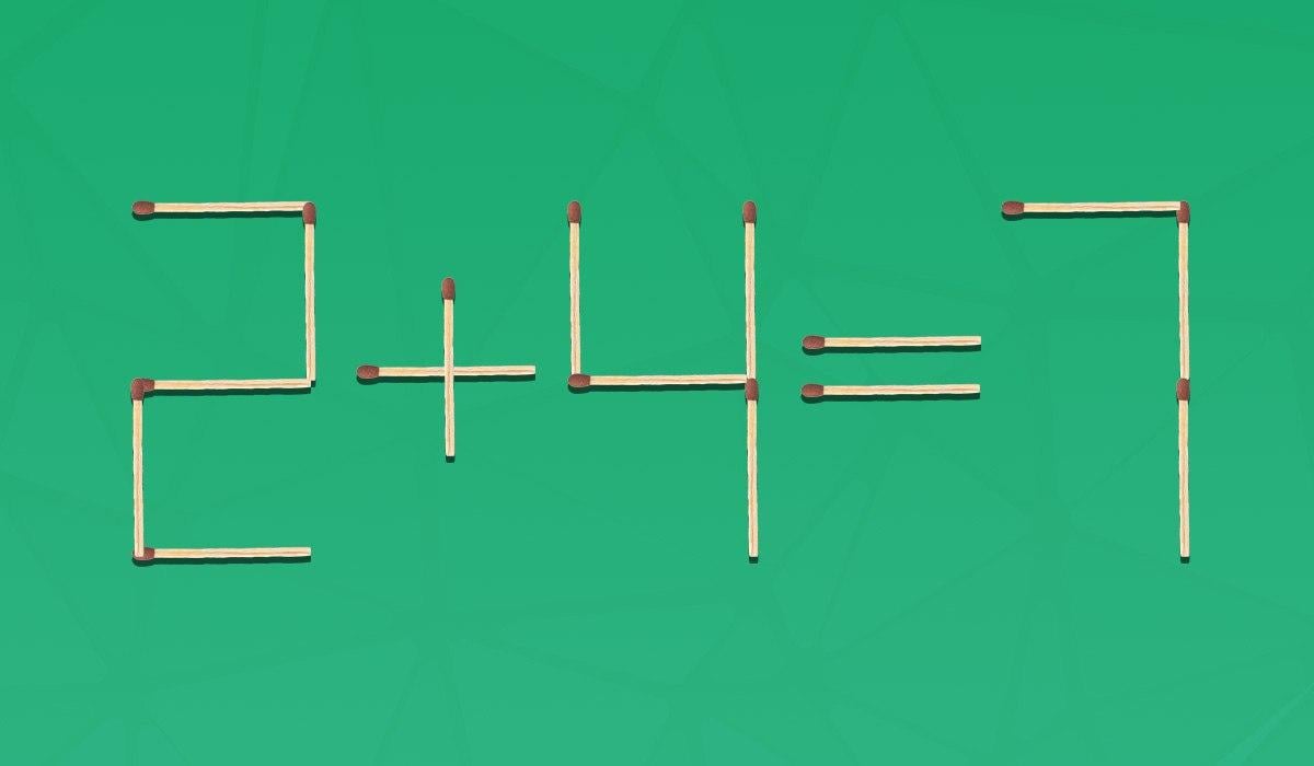 A prima vista, questo rompicapo con i fiammiferi è molto semplice, ma non bisogna sottovalutarlo. Per trovare la soluzione giusta, sono necessarie attenzione, pensiero logico e capacità di notare i dettagli. Dovete correggere l’uglianza matematica errata 2 + 4 = 7 fatta di 16 fiammiferi spostandone uno.