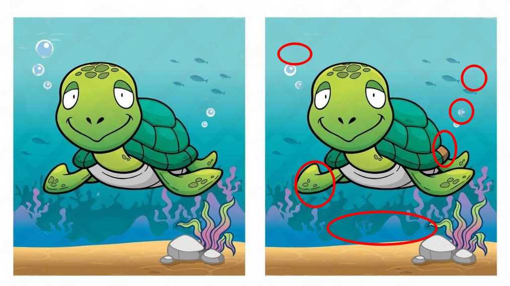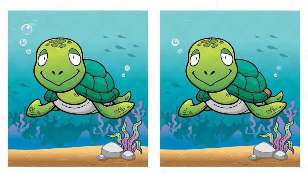 Q è la differenza tra due tartarughe: trova 6 differenze in 15 secondi